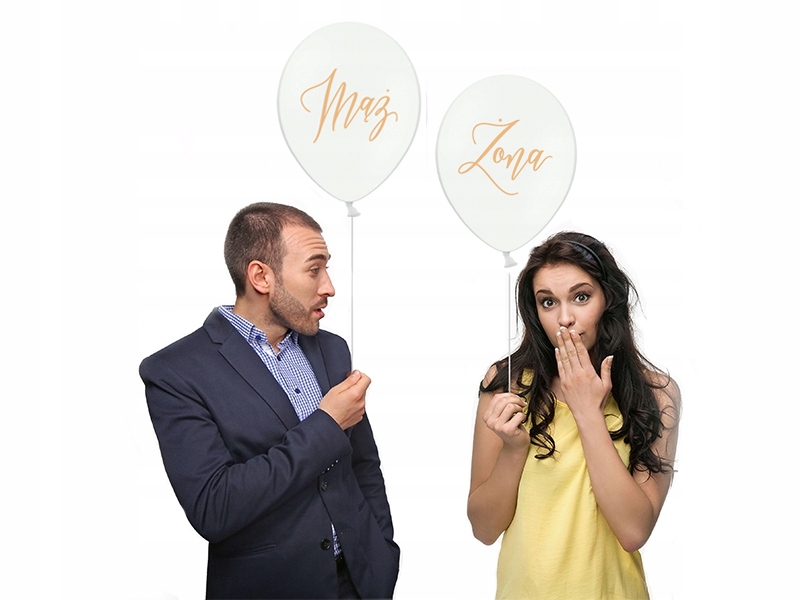• W zestawie trzy balony z dwustronnym, złotym nadrukiem MĄŻ oraz trzy balony z dwustronnym, złotym nadrukiem ŻONA