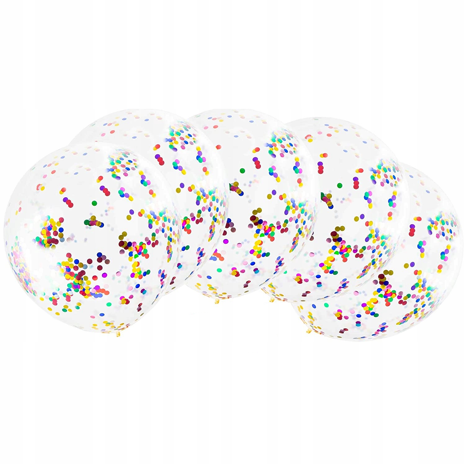 Balony przezroczyste z kolorowym konfetti 30 cm 5 szt.