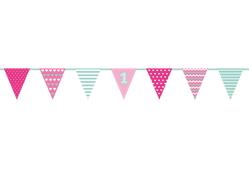 Girlanda papierowa flagi - Roczek dla dziewczynki