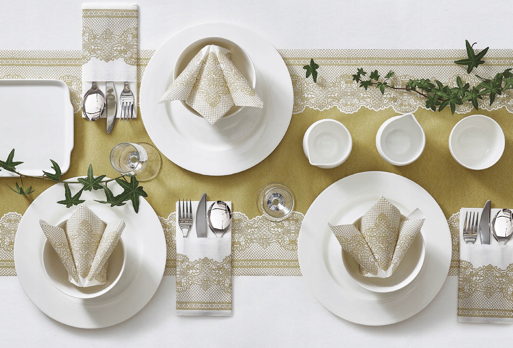 Serwetki dekoracyjne stanowią obowiązkowy element dekoracji. Można je złożyć w fantazyjne kształty, dzięki czemu są nie tylko praktyczne, ale również ozdobne. Umożliwiają ciekawą zabawę formą przestrzenną, która z pewnością zostanie doceniona przez gości.