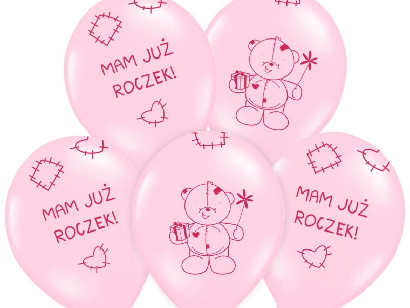 BALONY NA ROCZEK Pierwsze Urodziny 6szt Pink