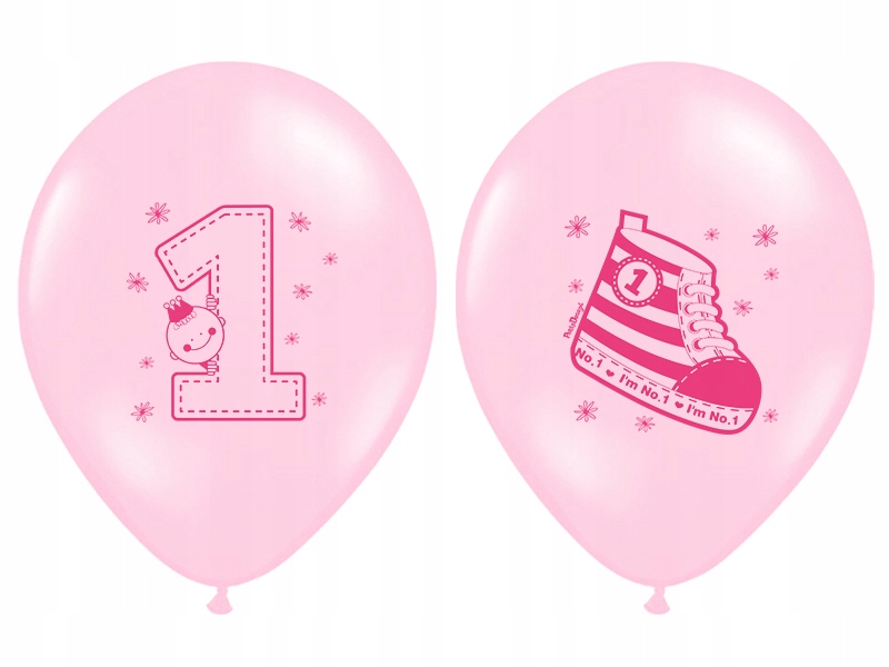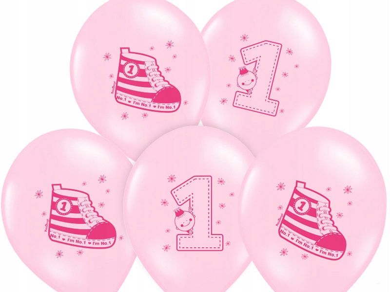 BALONY ROCZEK Pierwsze Urodziny Trampek Pink 6szt