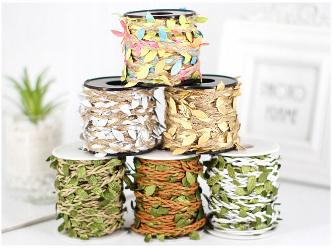 Mocny sznurek naturalny z białymi listkami - 10m