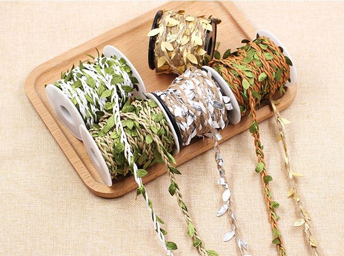 • Sznurek zdobiony białymi listkami