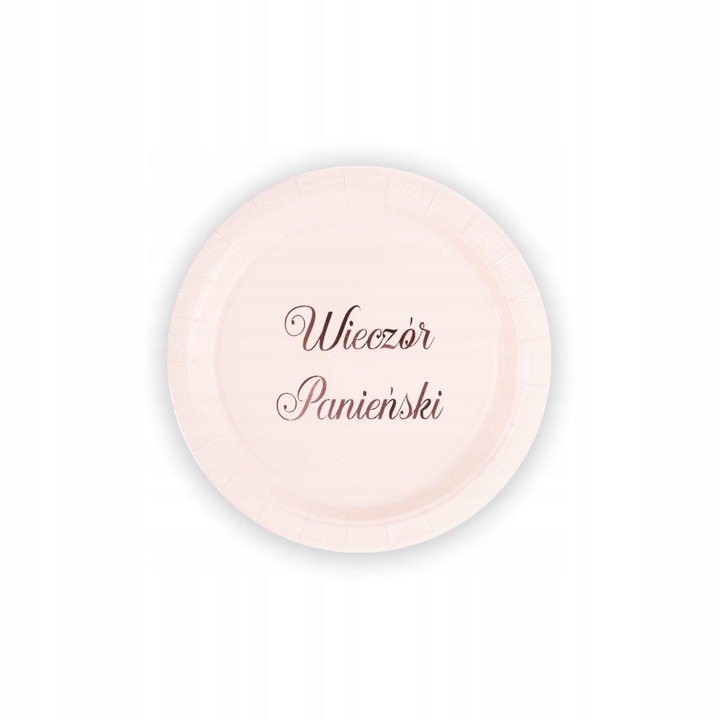 Talerzyki papierowe różowe napis rose gold Wieczór Panieński 18cm 6szt