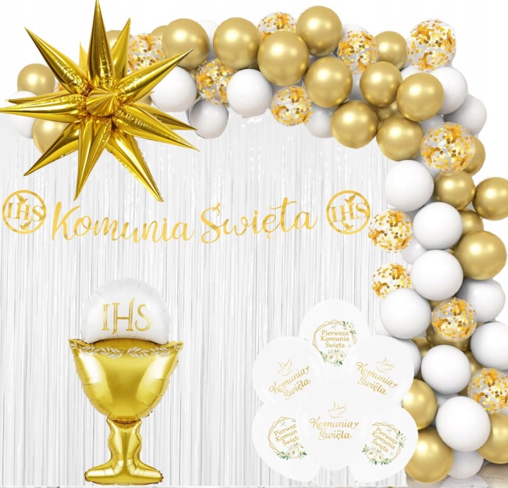 Zestaw dekoracji komunijnej balony baner kurtyna 67 elementów