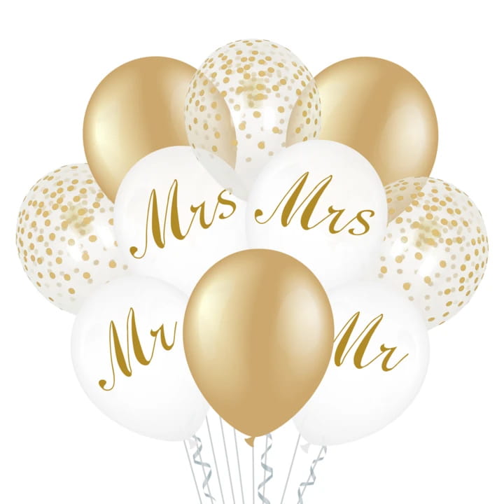 BALONY Ślubne z nadrukiem MR i MRS -- 10szt