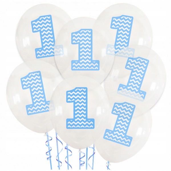 BALONY TRANSPARENTNE Urodziny Roczek - 7szt