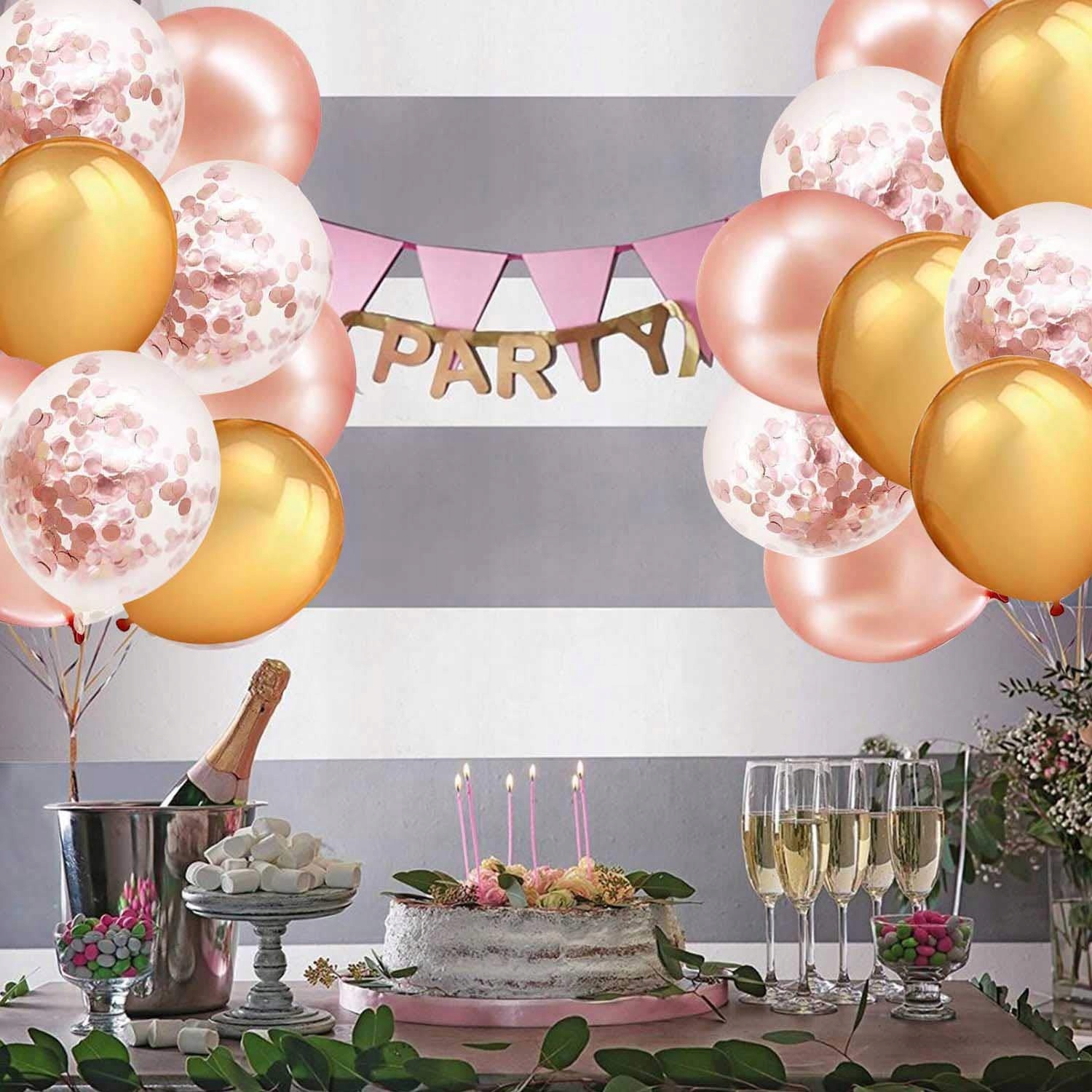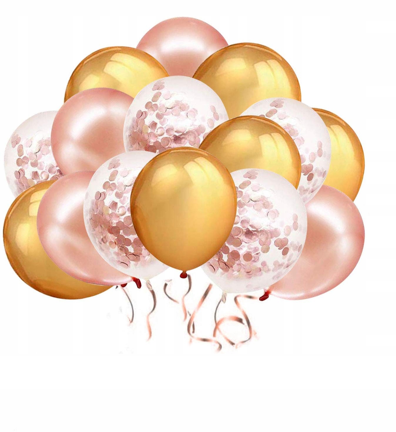 BUKIET BALONÓW ROSE GOLD & GOLD z KONFETTI