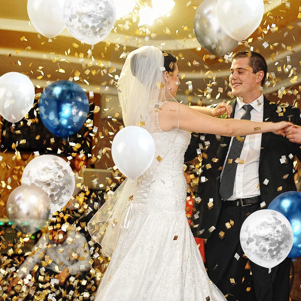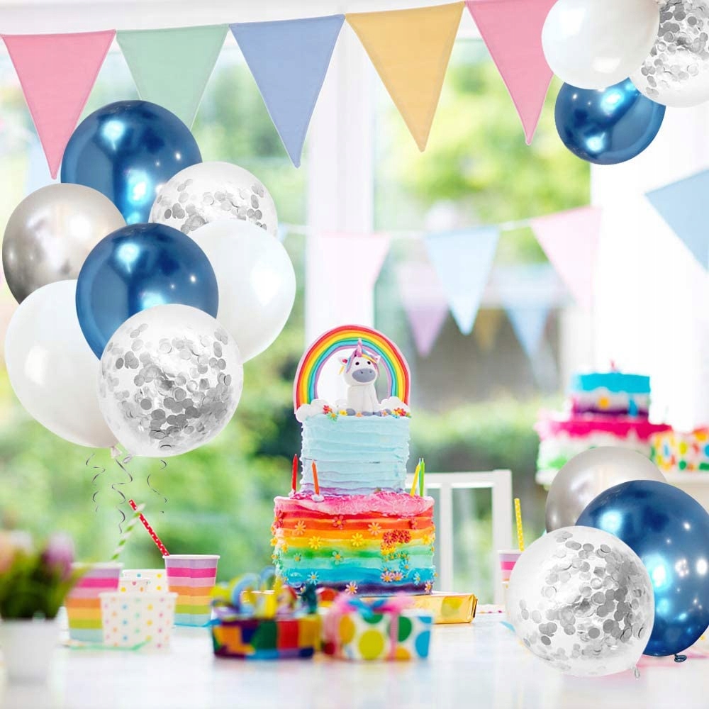 BUKIET BALONÓW WHITE & GLOSSY BLUE z KONFETTI