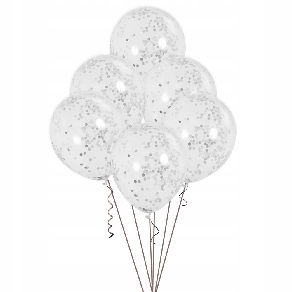 - 5 balonów przeźroczystych ze srebrnym konfetti - 28cm