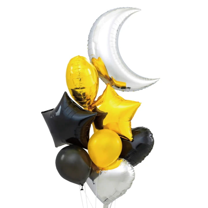 • 2 Balony foliowe gwiazdki: złoty i czarny - 45cm