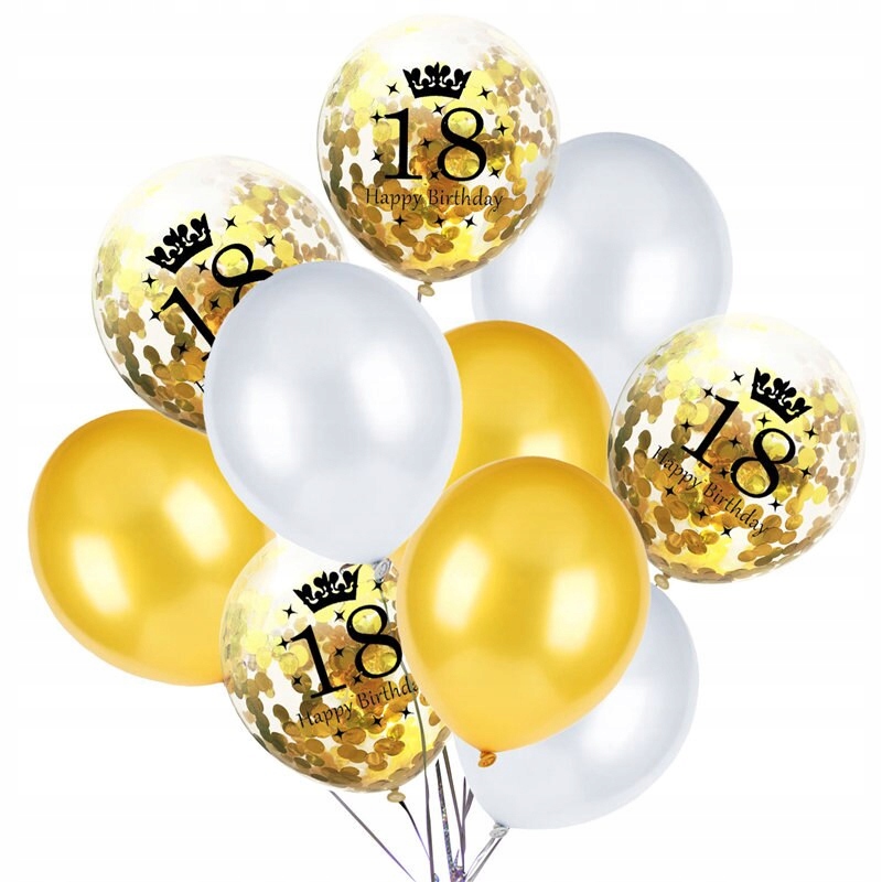 Balony Zestaw 18 Urodziny Osiemnastka Gold + White
