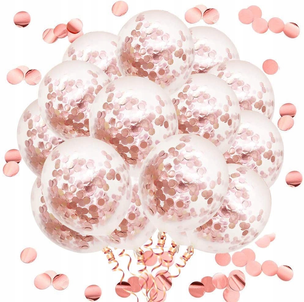 6 Balonów przeźroczystych z konfetti Rose Gold - 28cm