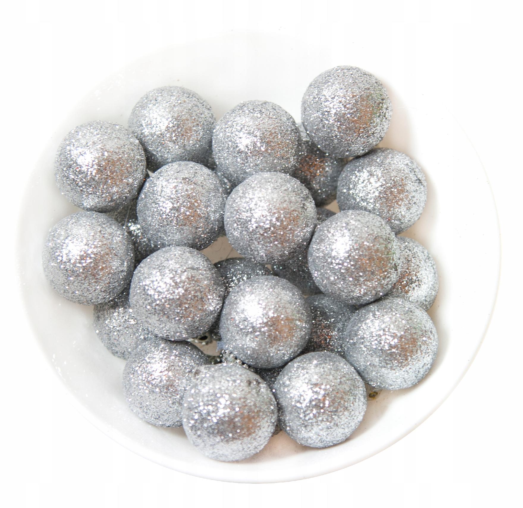 Bombki Brokatowe SREBRNE na stroik - 3cm - 24szt