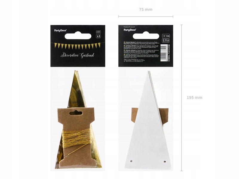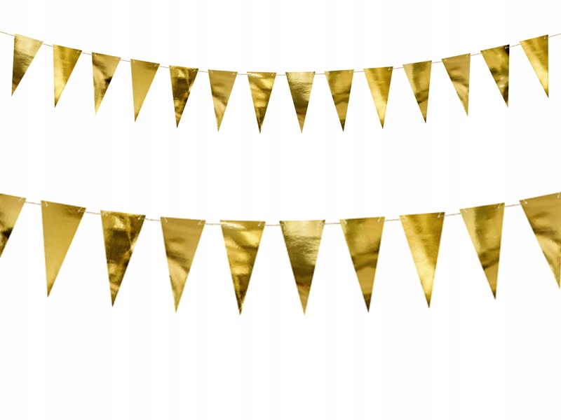 Girlanda flagietki, w kolorze złotym, do samodzielnego złożenia, zestaw zawiera 14 flagietek i ok. 3m złotego sznurka.