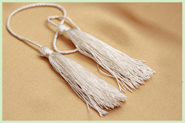 Opakowanie zawiera 5 białych sznureczków zakończonych frędzelkami. Długość jednego sznureczka to 45cm
