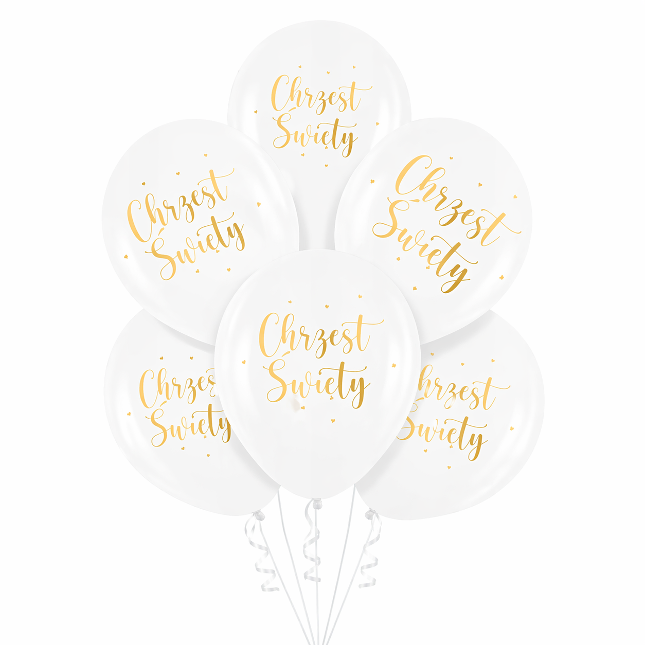 - Balony lateksowe białe ze złotym nadrukiem Chrzest Święty 30cm - 13szt