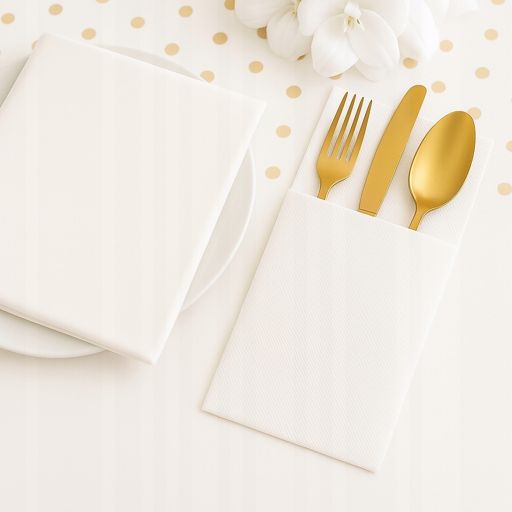 Kieszonki na sztućce Białe Eleganckie Serwetki - 25szt