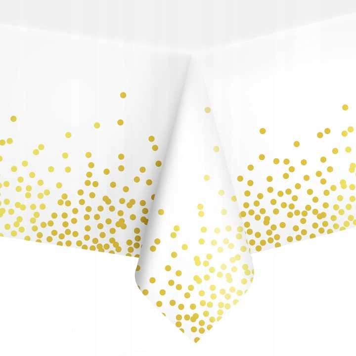 Obrus foliowy na Urodziny Cerata Obrus Biały w złote kropki 137x274cm