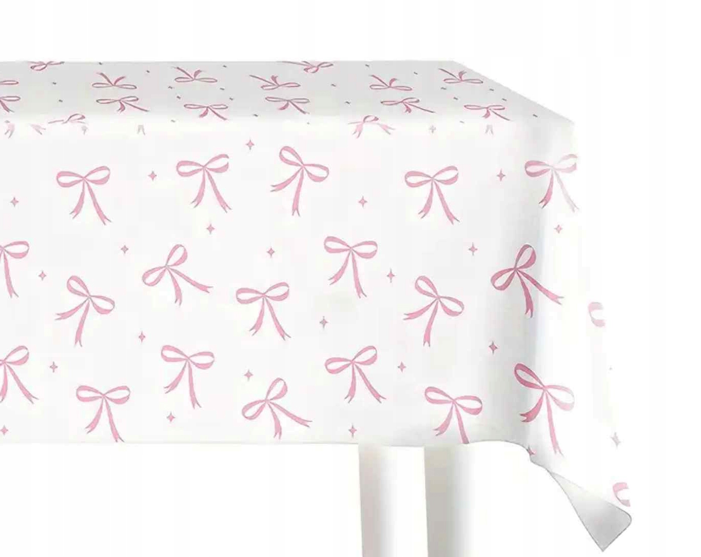 Obrus Foliowy Wodoodporny Obrus biały w różowe kokardki Urodziny 137x274cm