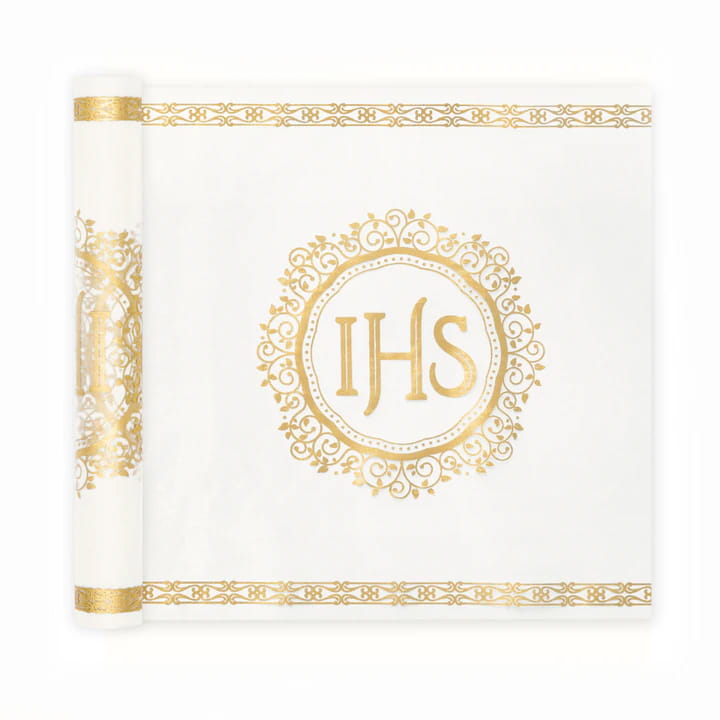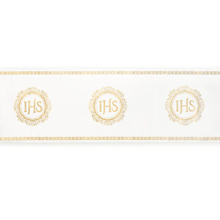 Złoty nadruk IHS – symboliczny i elegancki wzór podkreślający znaczenie uroczystości.