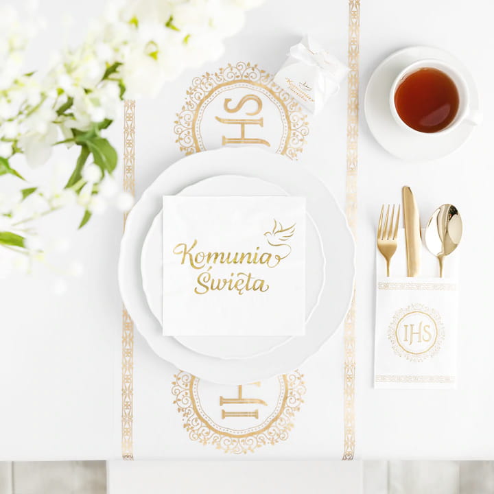 ➡️ Doskonałe połączenie z serwetkami komunijnymi – tworzy harmonijną dekorację.