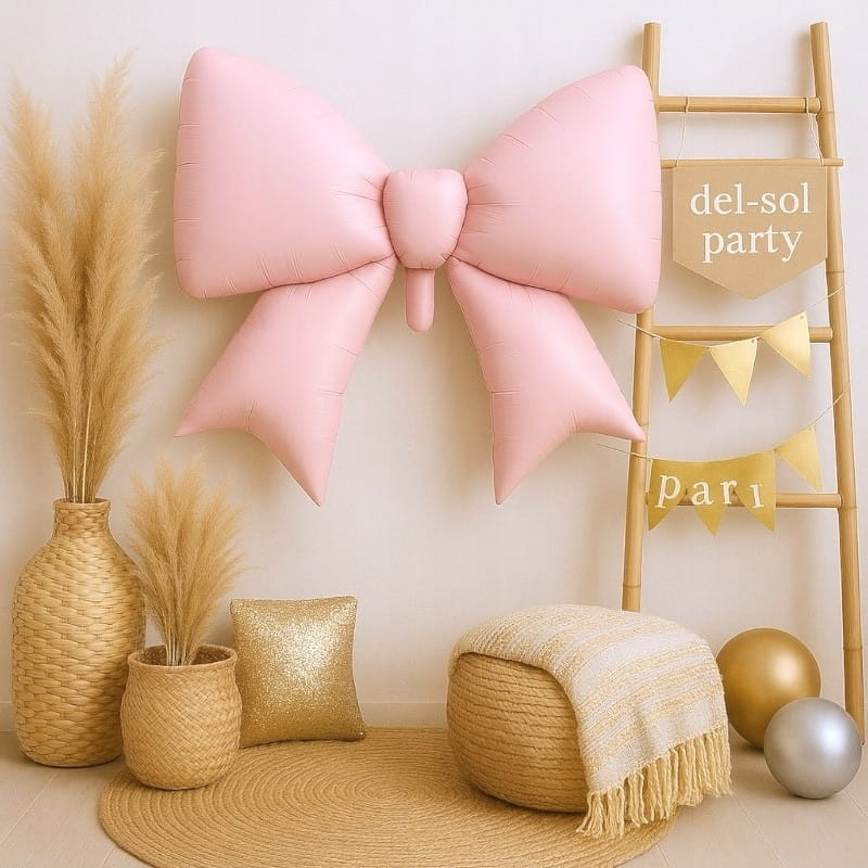 Odkryj urok tego wyjątkowego balonu foliowego w kształcie kokardy. Z jego satynowym, matowym wykończeniem i delikatnym różowym odcieniem, jest idealnym dodatkiem do każdej dekoracji.