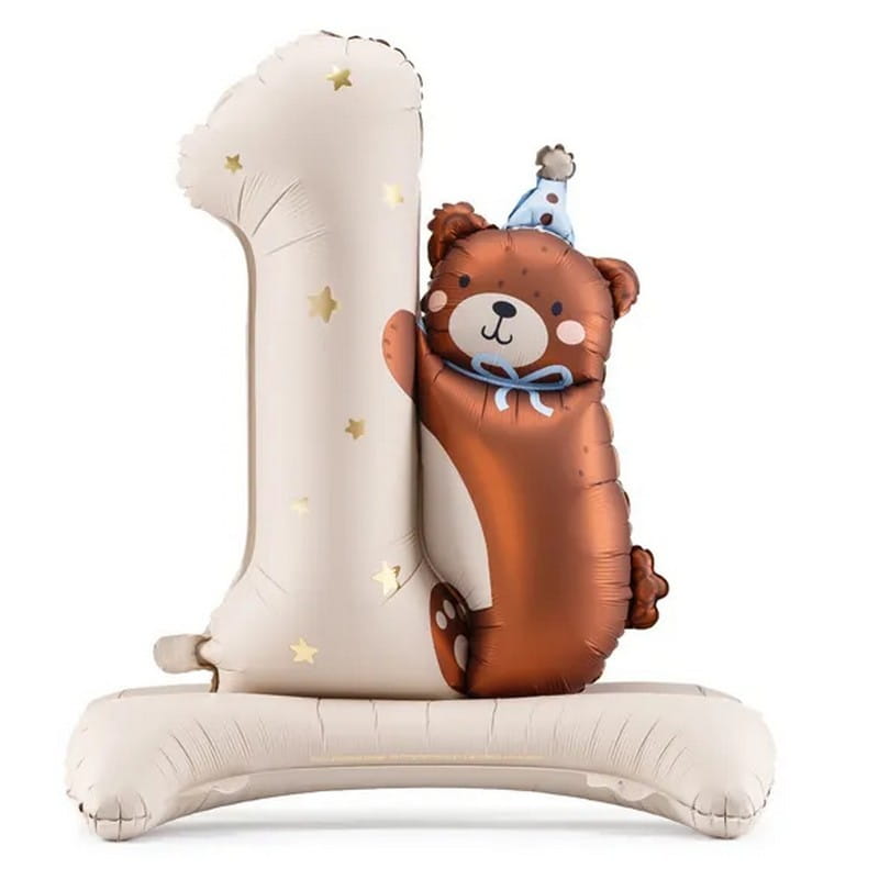 Piękny balon foliowy na Roczek, Urodziny. Stojący cyfra 1 z misiem 97x75cm