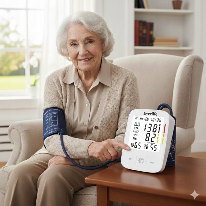 ▶️ Duży i Czytelny Wyświetlacz LCD: Wyniki (SYS, DIA, PULS) są prezentowane na ekranie o wysokim kontraście, co zapewnia komfort odczytu nawet dla seniorów.