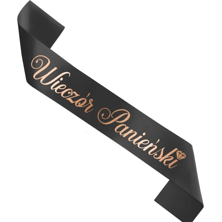 Szarfa Wieczór Panieński czarna 160 cm napis rose gold