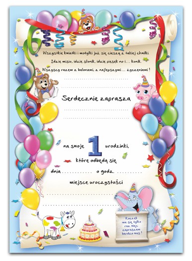 ZAPROSZENIA Urodzinowe dla dzieci 6200 - 10szt
