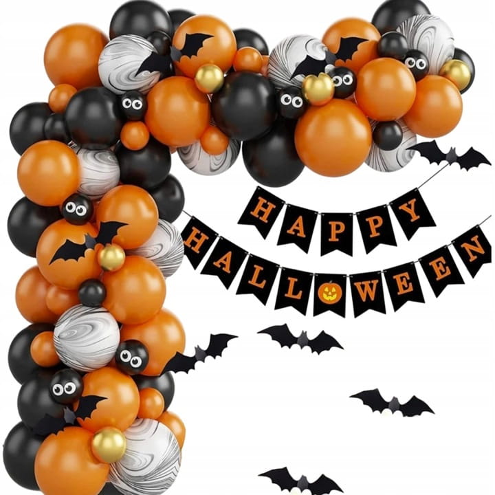 ZESTAW BALONÓW na HALLOWEEN GIRLANDA BALONOWA NIETOPERZE BANER - 80szt