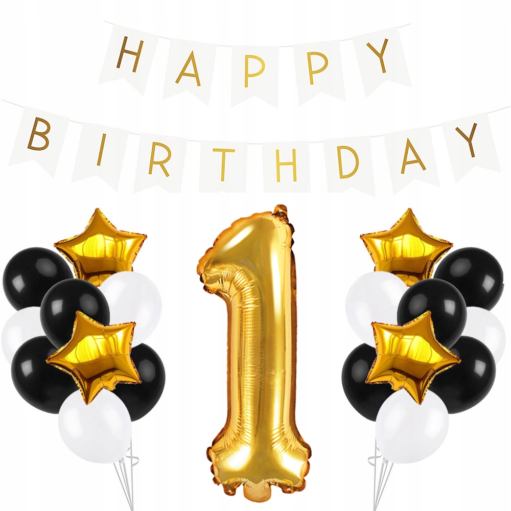ZESTAW BALONY i BANER na Urodziny ROCZEK GOLD