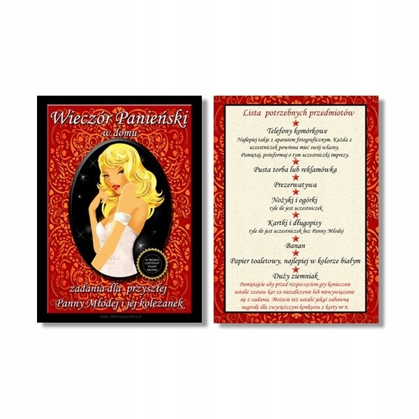 - W zestawie 13 kart ze zwariowanymi zadaniami, w tym certyfikat dla Panny Młodej