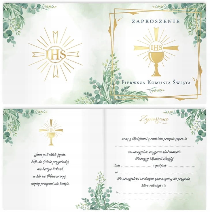 Śliczne zaproszenia na I Komunię - IHS
