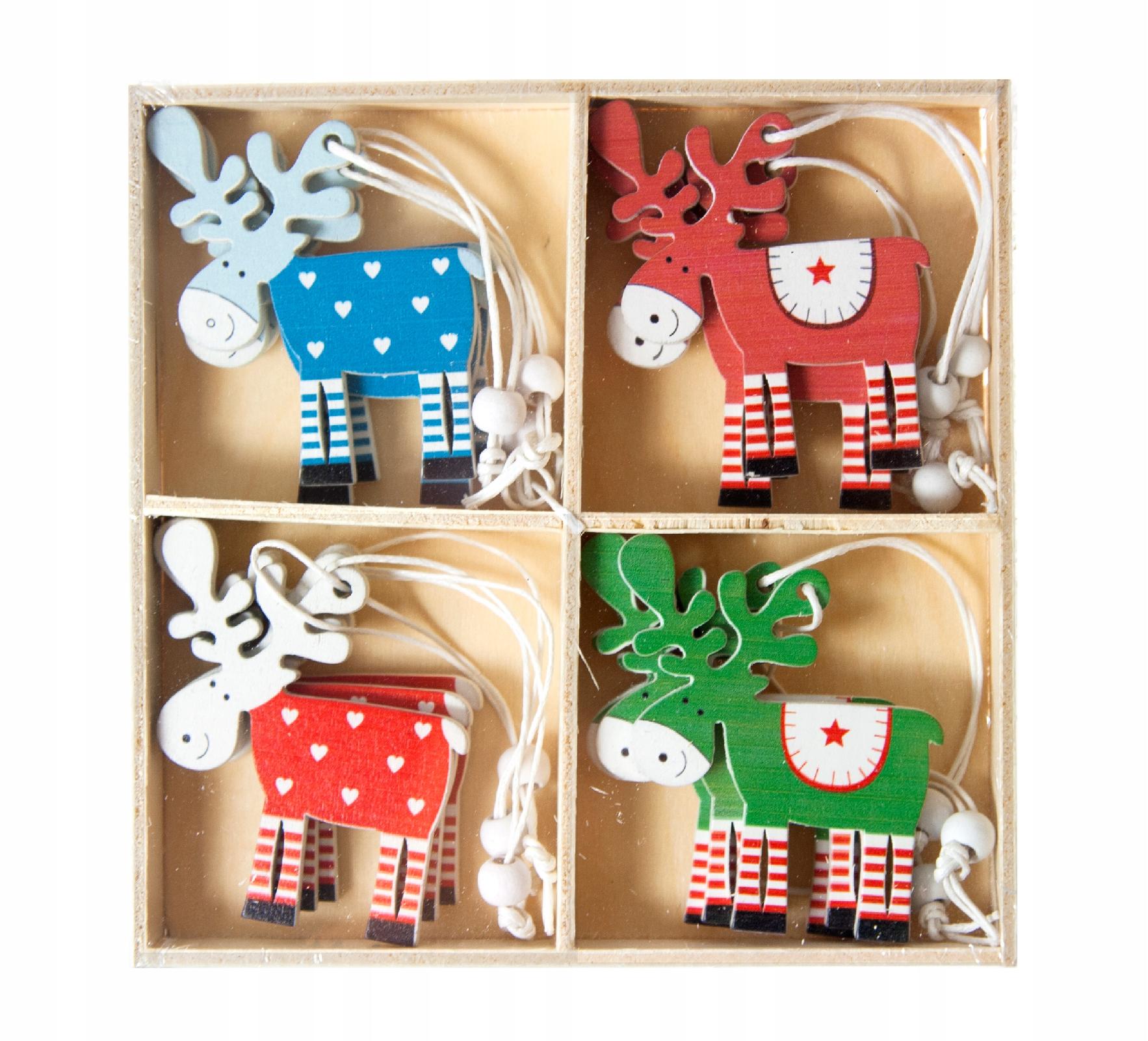 Zawieszki drewniane na Choinkę Renifery Bombki na choinkę - 12szt