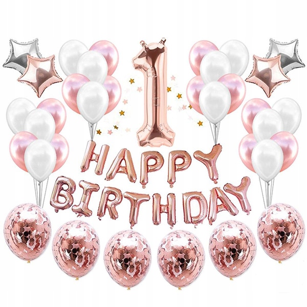 Zestaw Balonów ROCZEK - ROSE GOLD i Konfetti 36szt