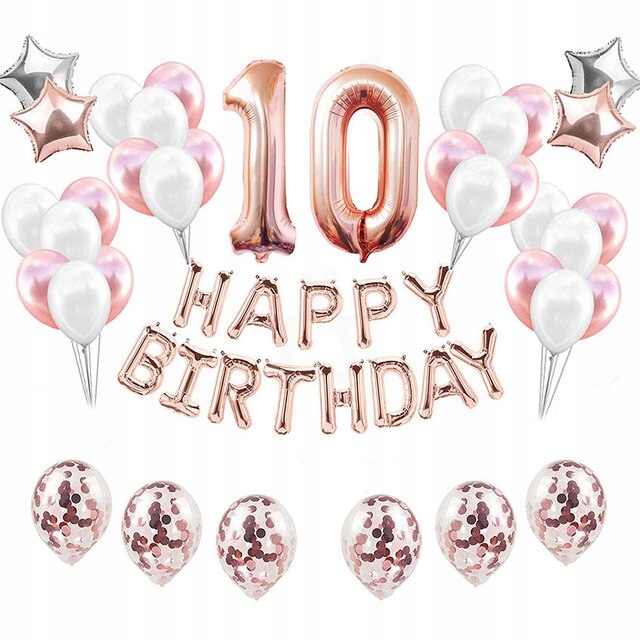 Zestaw Balonów na 10-te Urodziny ROSE GOLD Balony