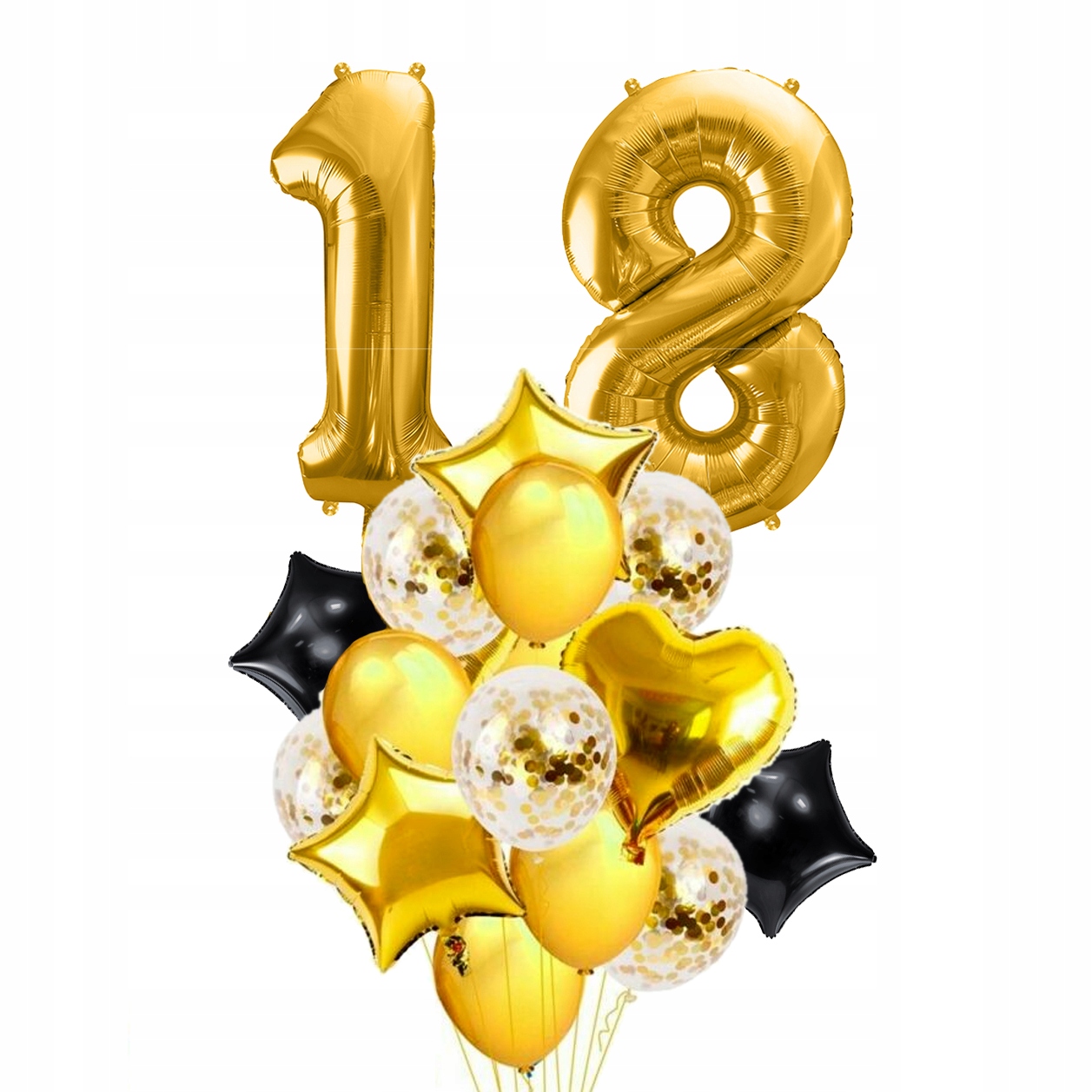 Zestaw Balonów na 18 Urodziny GOLD z Konfetti
