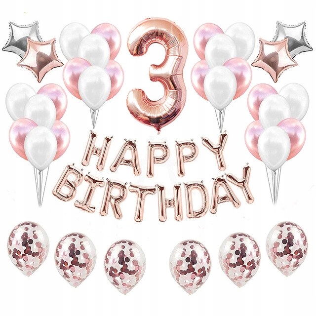 Zestaw Balonów na 3-cie Urodziny ROSE GOLD