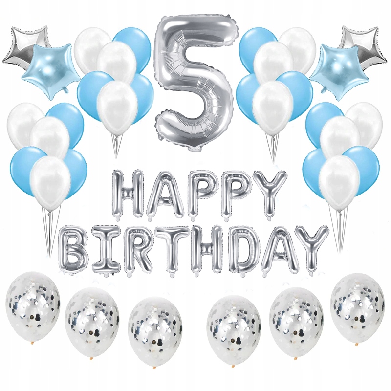 Zestaw Balonów na 5 URODZINY SILVER BLUE Konfetti