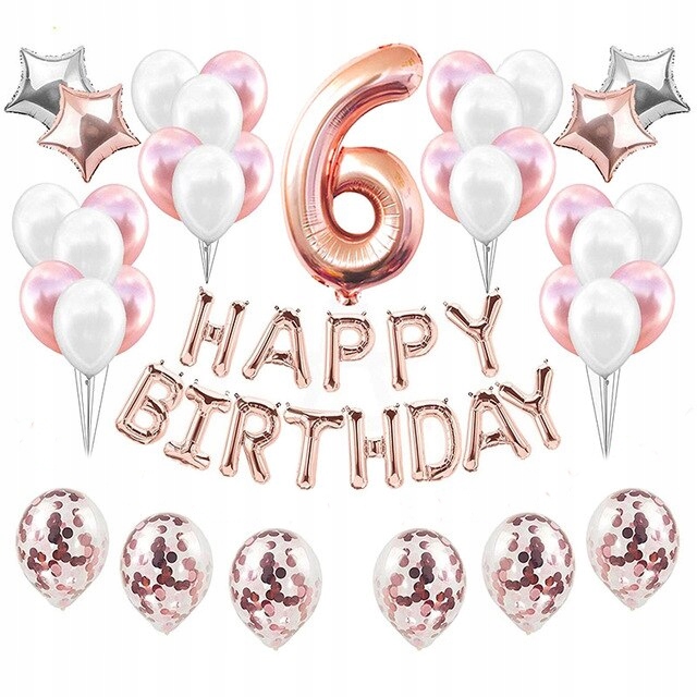 Zestaw Balonów na Szóste Urodziny ROSE GOLD