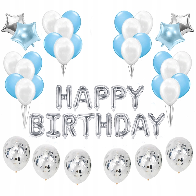 Zestaw Balonów na URODZINY SILVER BLUE z Konfetti