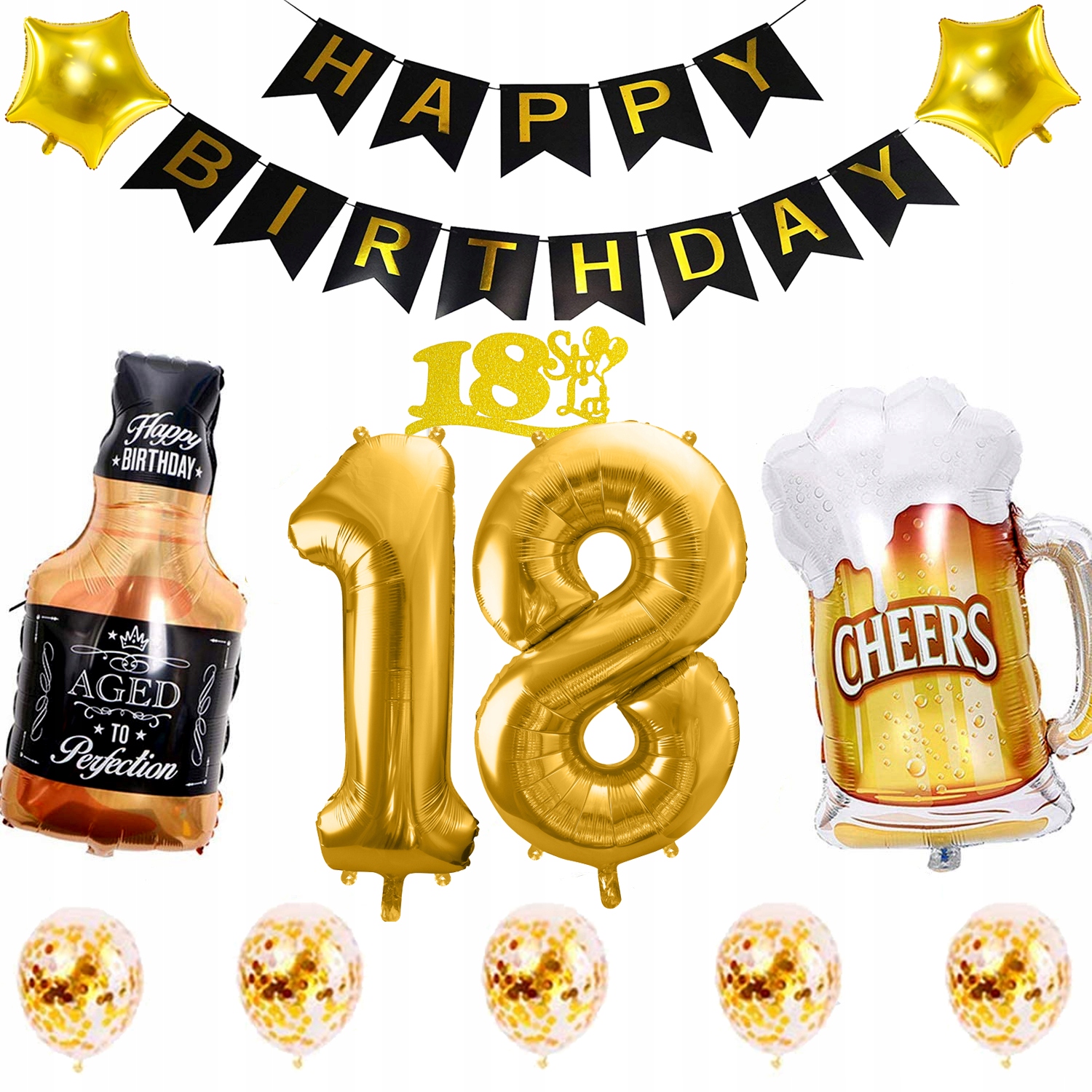 Zestaw Balony 18 Urodziny BLACK & GOLD Whisky