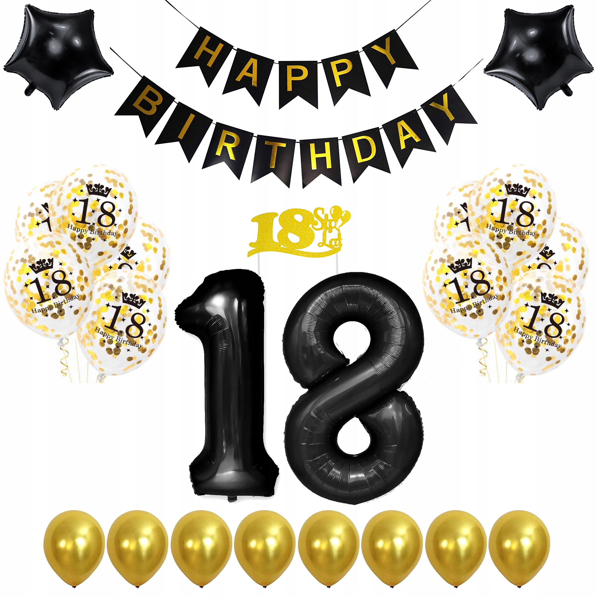 Zestaw Balony 18 Urodziny BLACK & GOLD XXL