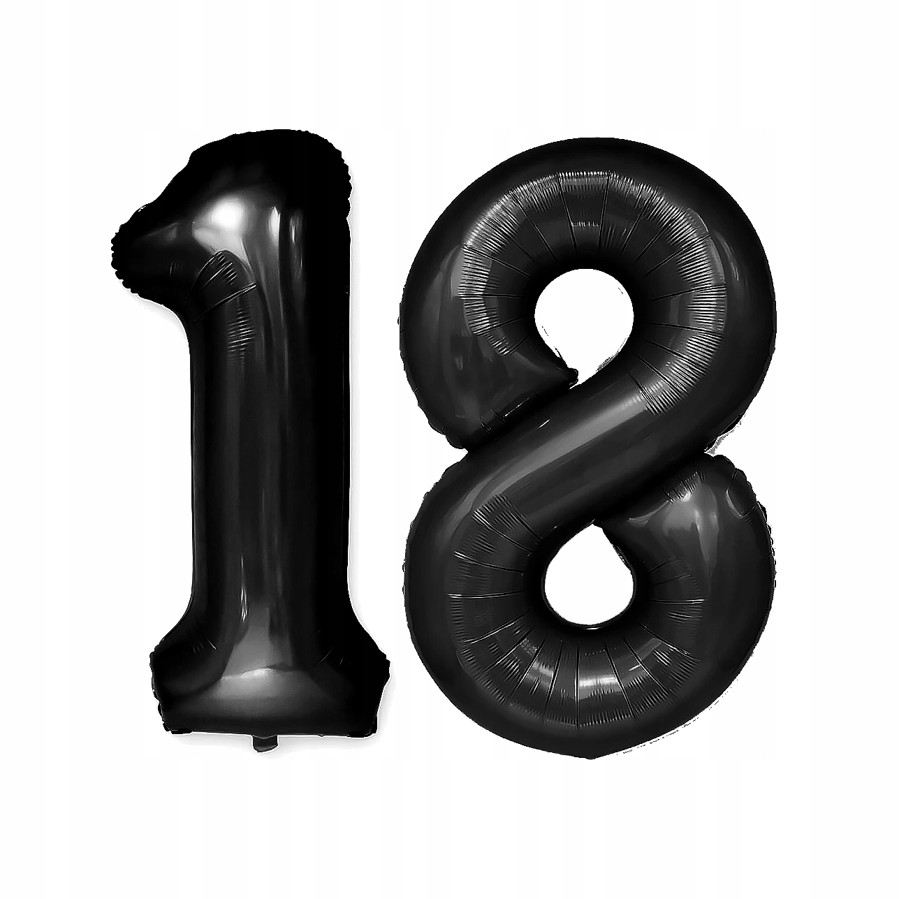 • 2 balony foliowe cyfry czarne "1" i "8": 80cm (przed napompowaniem)