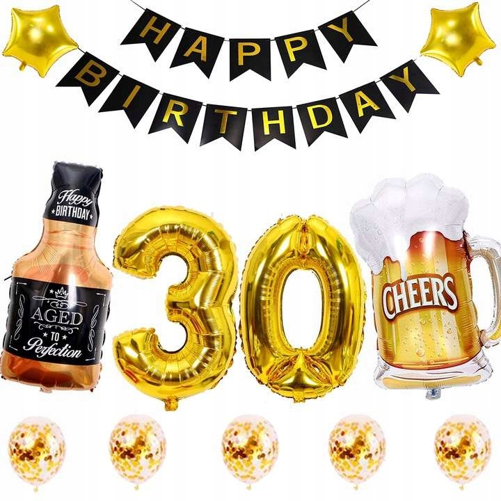 Zestaw Balony 30 Urodziny BLACK & GOLD Whisky