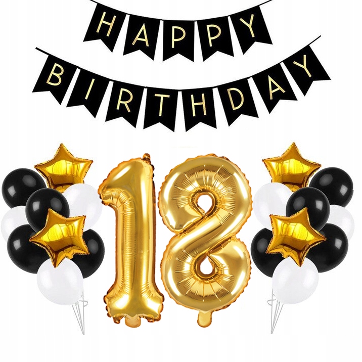 Zestaw Balony na 18 Urodziny HAPPY BIRTHDAY GOLD