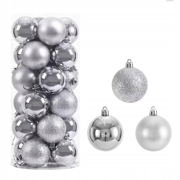 Zestaw Bombki SREBRNE na stroik Bombki na Choinkę 3cm - 35szt